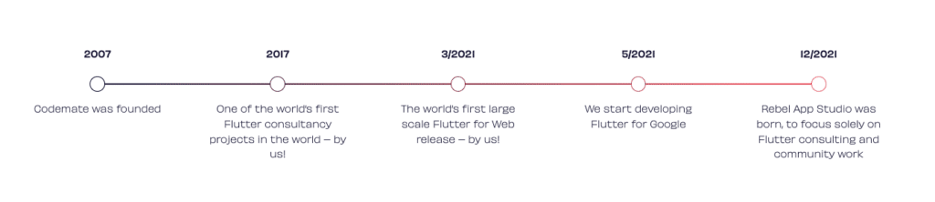 In 2021 we launched Rebel App Studio, which continues our story with what I call “natural progression”: a separate brand for our Flutter consultancy that can shout out loud and clear how great Flutter is.