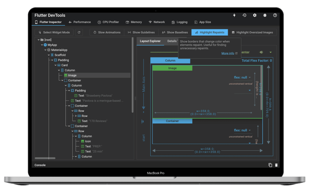“Flutter DevTools is built with Flutter. I think that’s a pretty cool detail — when you debug your Flutter app, you’re doing it with Flutter,” says Codemate’s Flutter developer.