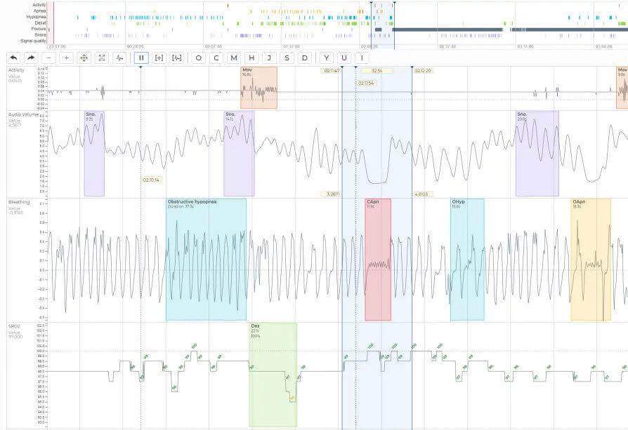 The user interface has different user roles and permissions. The most important feature for the doctors is viewing the patient sleep data and marking different events to the data set easily.